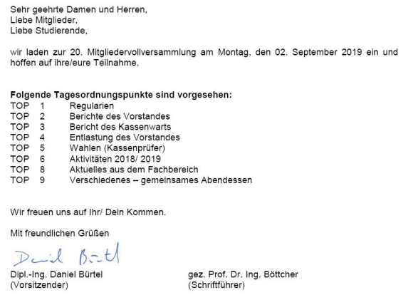 20. Mitgliedervollversammlung - 02.09.2019, um 19:00 Uhr: